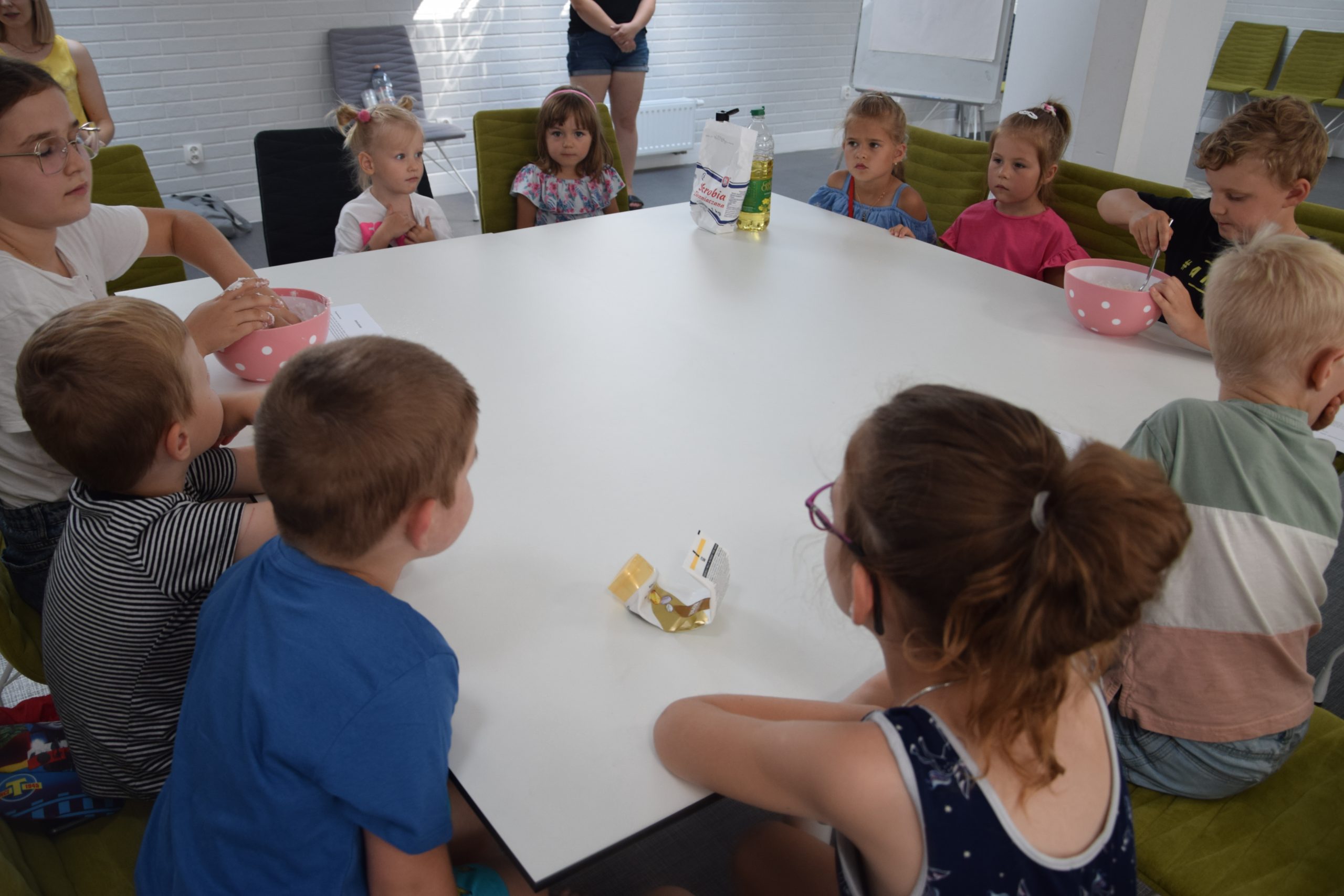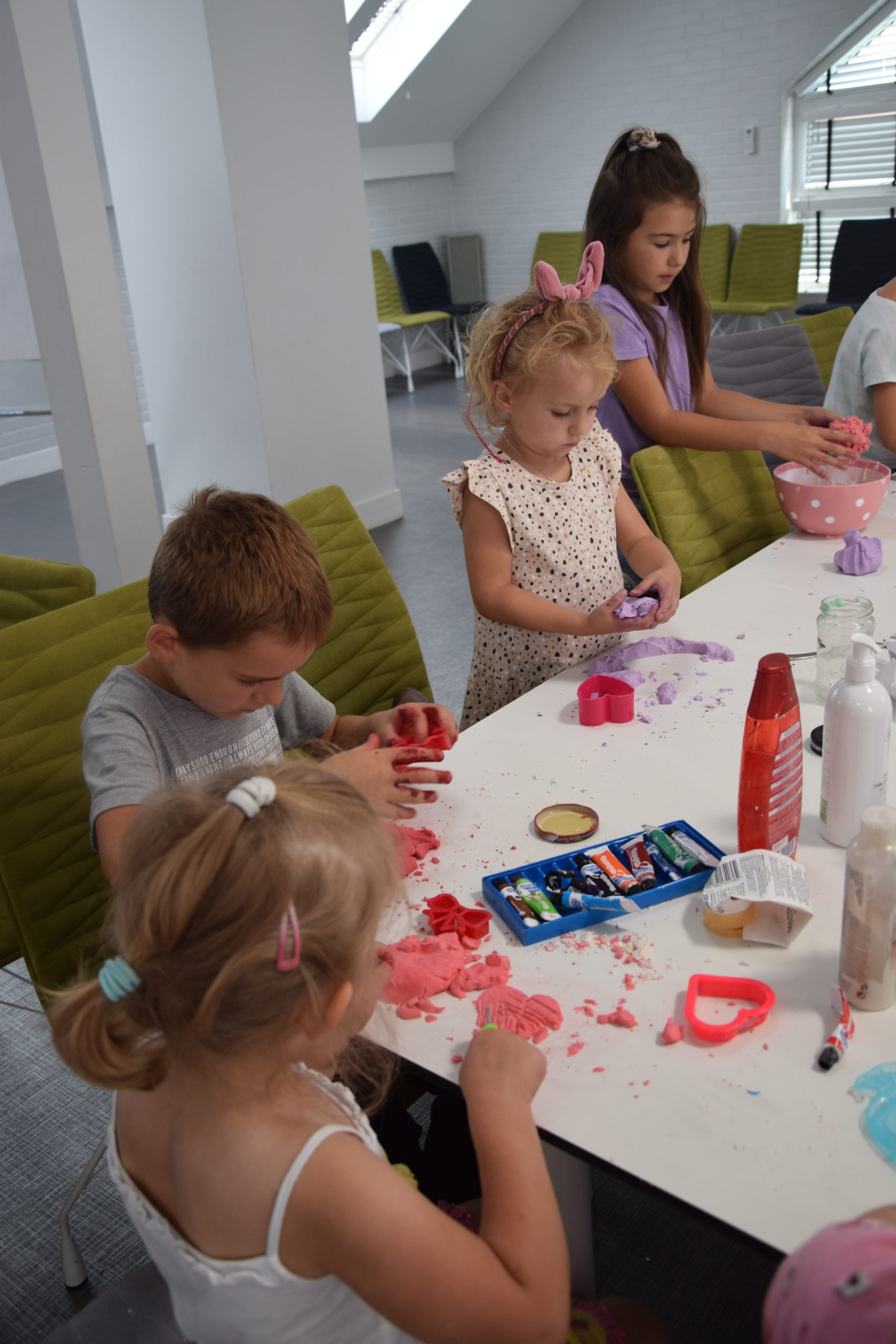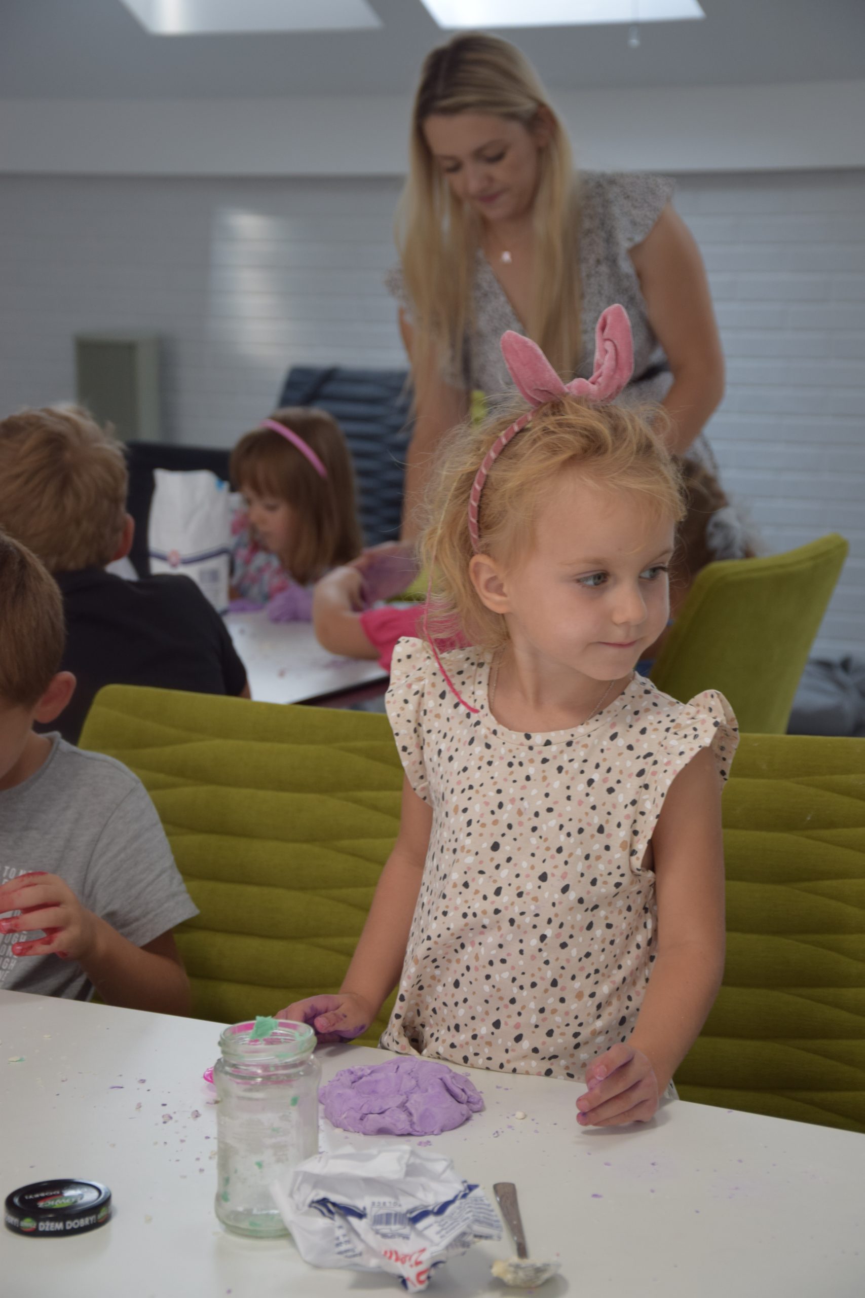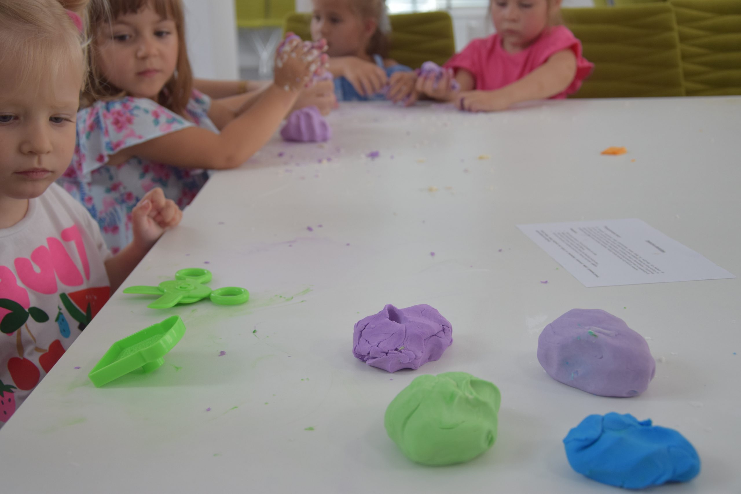 Dzisiejsze zajęcia były niezwykle ciekawym doświadczeniem. Dzieci miały możliwość samodzielnego wykonania domowej ciastoliny ze składników spożywczych oraz z kosmetyków ( szampon, odżywka itp.) Zabawy było co niemiara. W drugiej części zajęć dzieci obejrzały teatrzyk kukiełkowy, który samodzielnie przedstawiły.