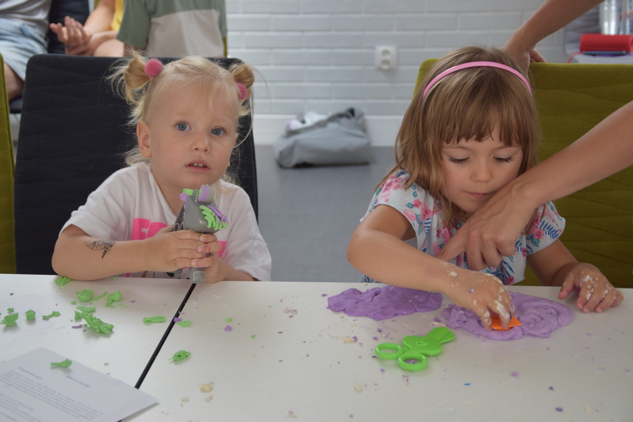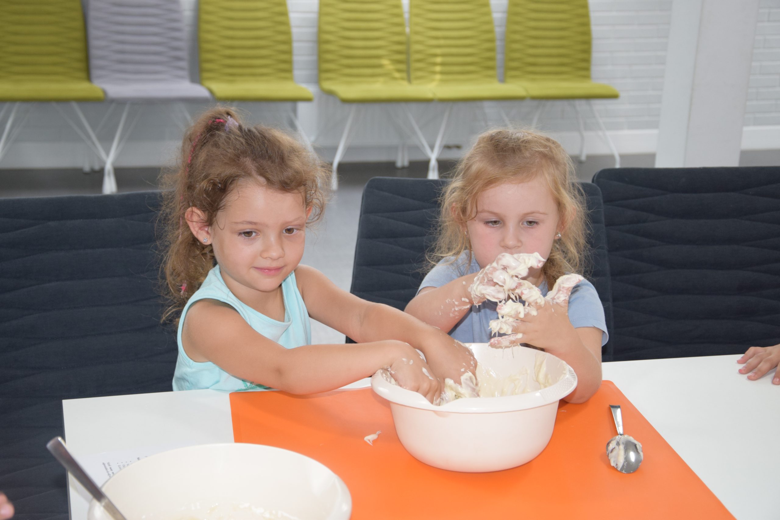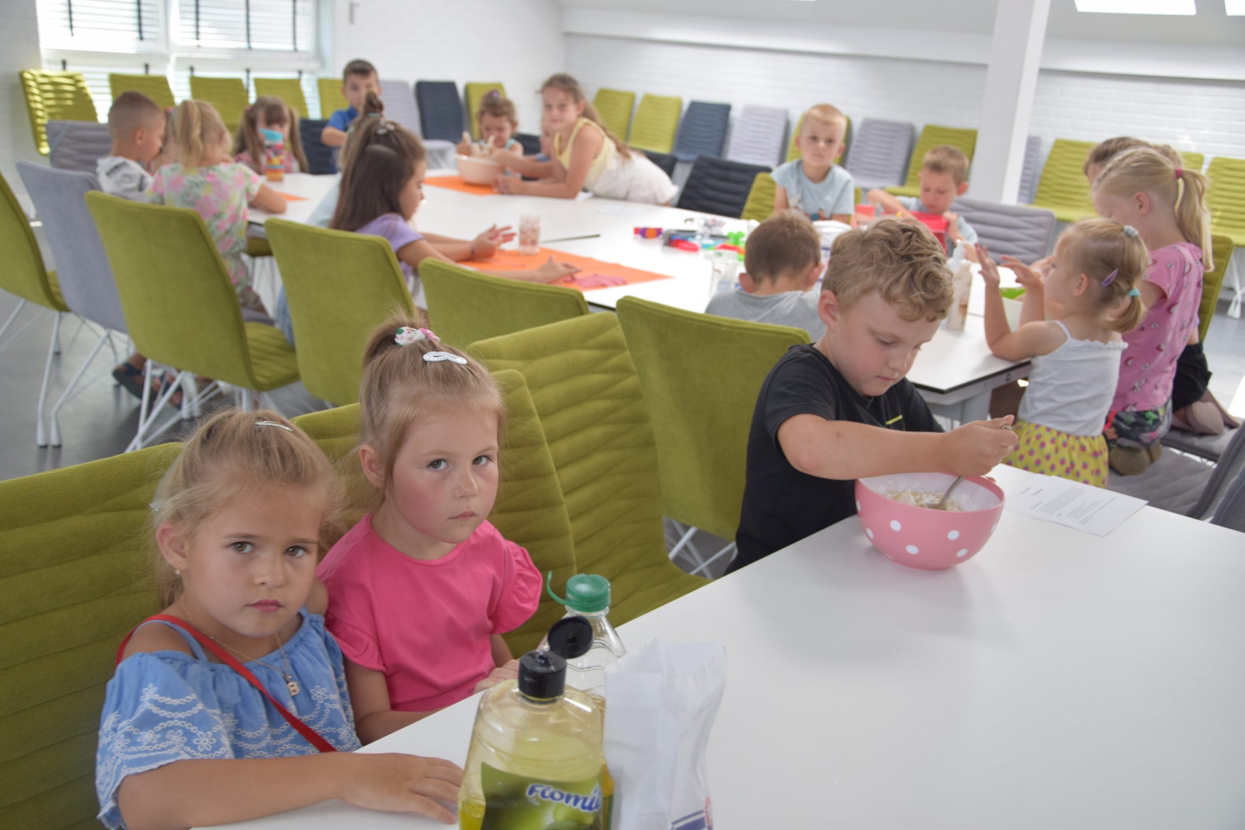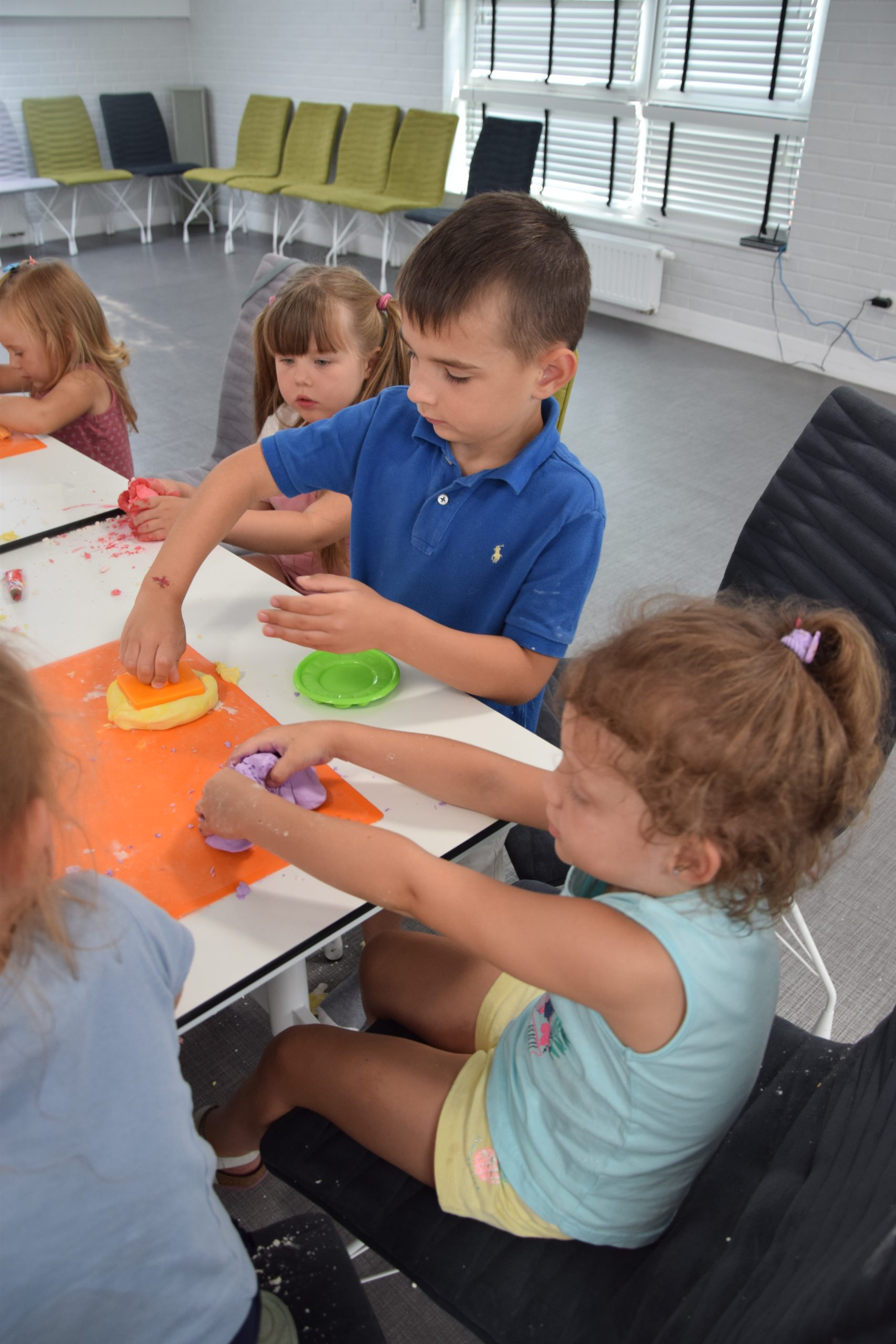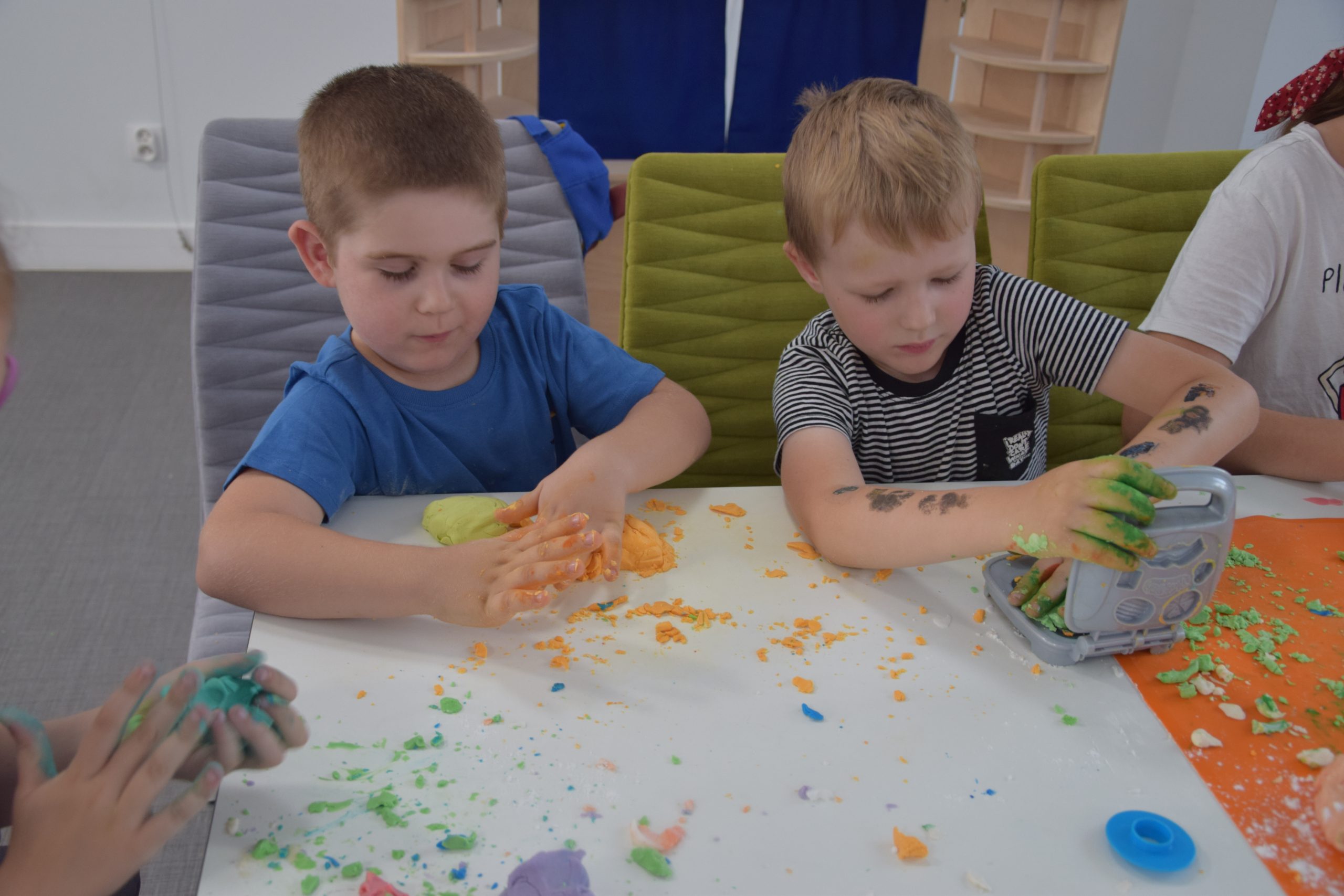 Dzisiejsze zajęcia były niezwykle ciekawym doświadczeniem. Dzieci miały możliwość samodzielnego wykonania domowej ciastoliny ze składników spożywczych oraz z kosmetyków ( szampon, odżywka itp.) Zabawy było co niemiara. W drugiej części zajęć dzieci obejrzały teatrzyk kukiełkowy, który samodzielnie przedstawiły.