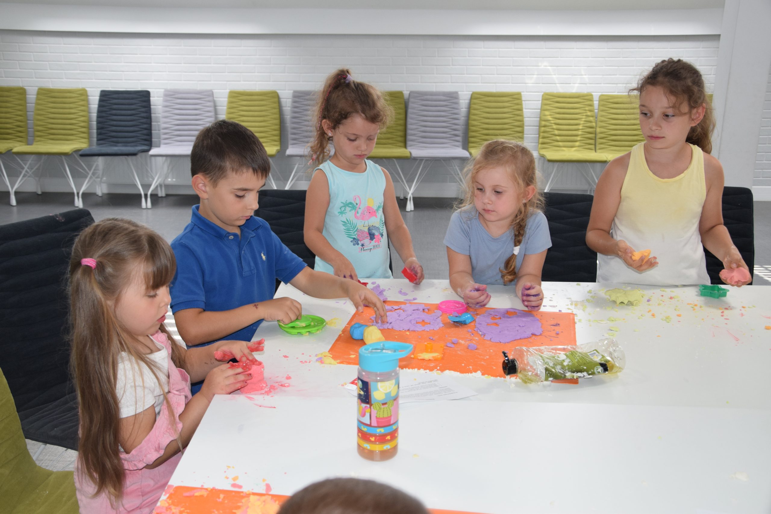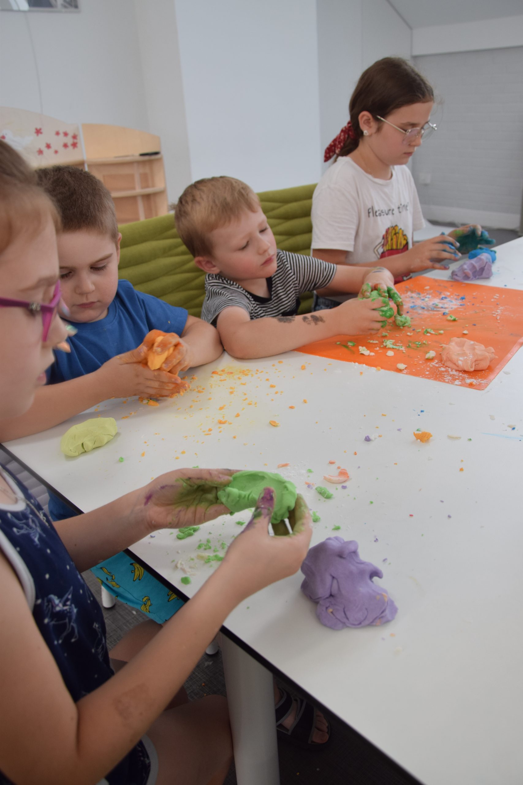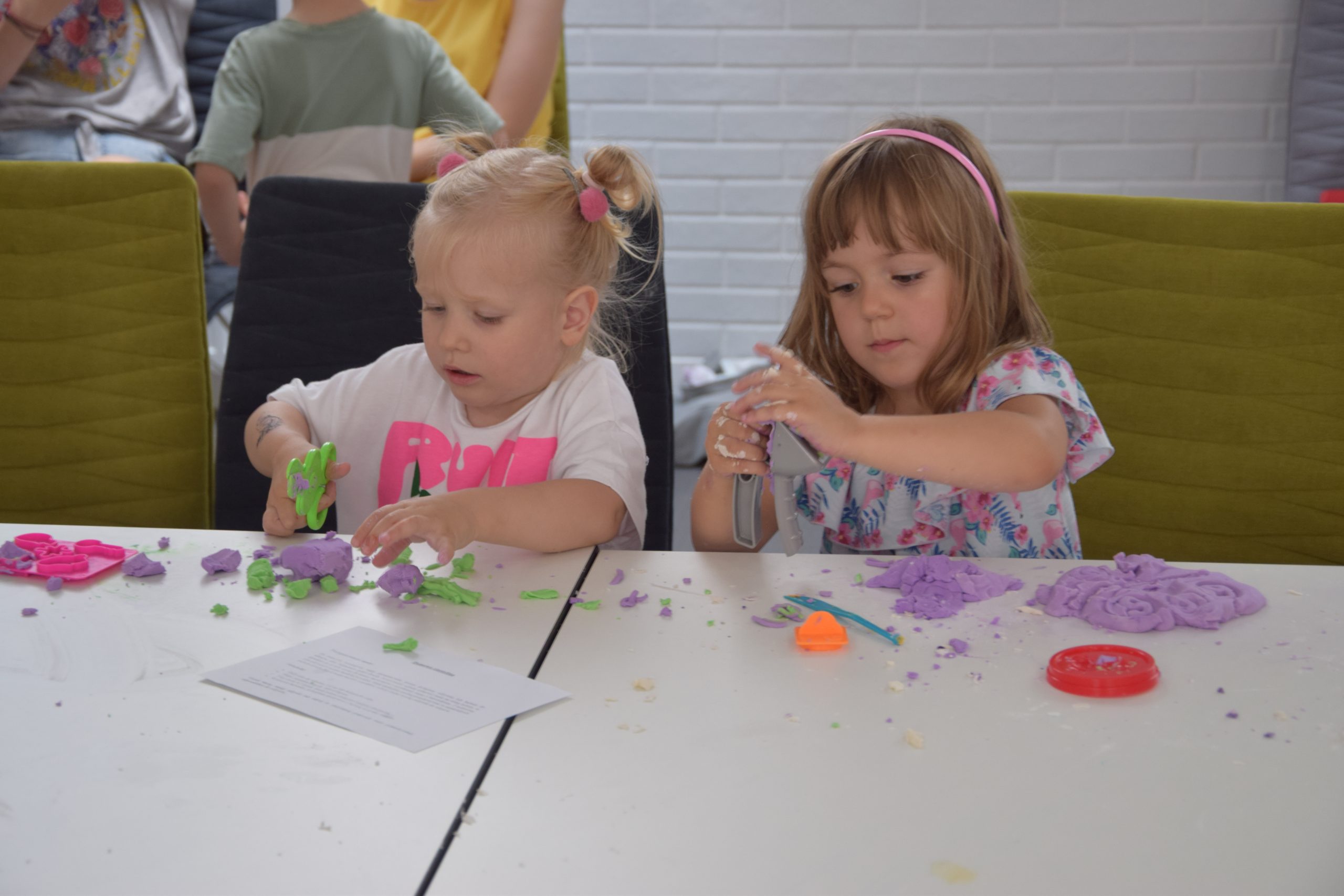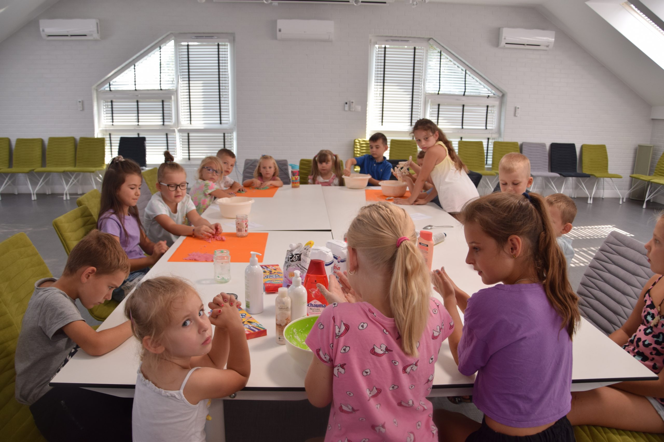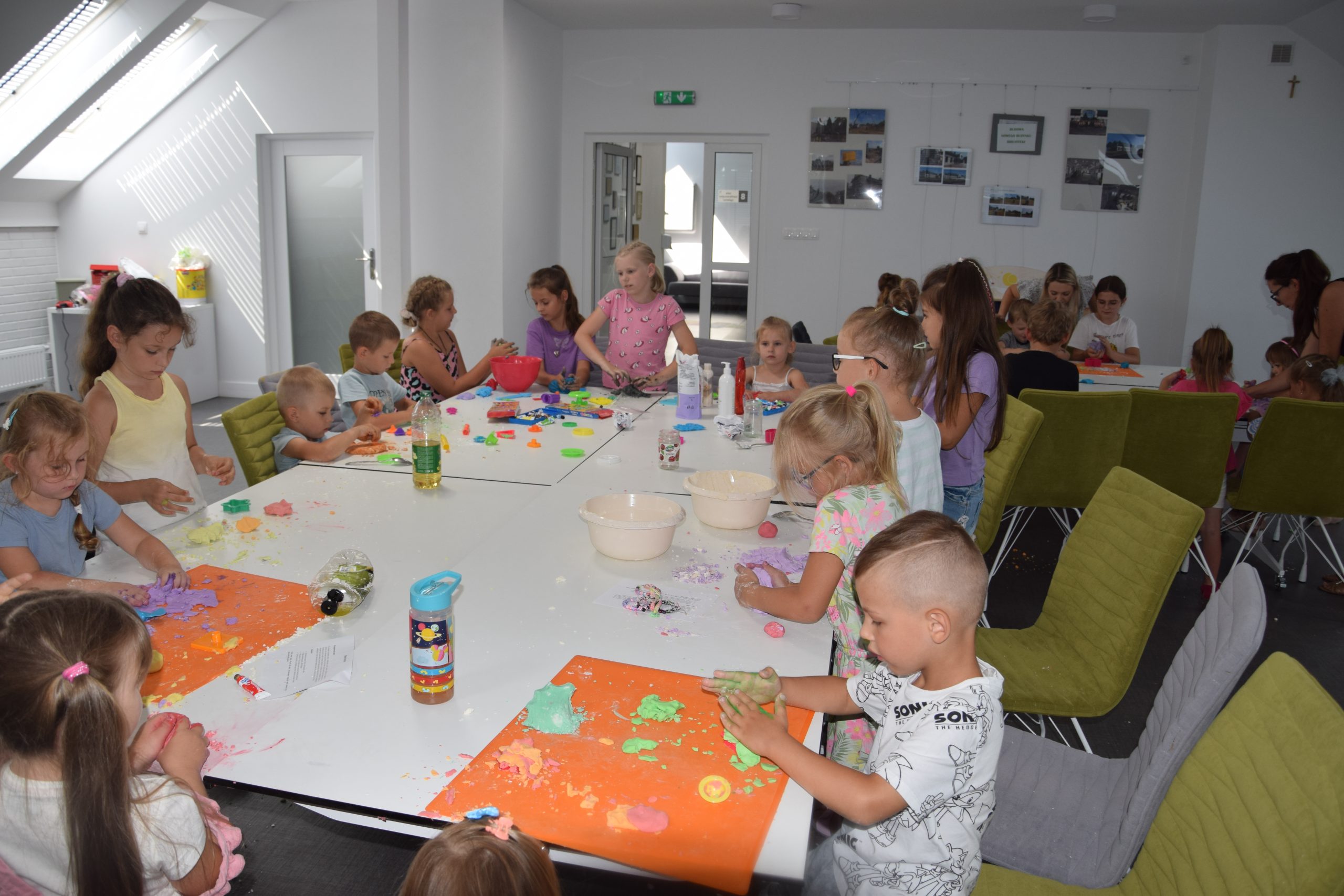 Dzisiejsze zajęcia były niezwykle ciekawym doświadczeniem. Dzieci miały możliwość samodzielnego wykonania domowej ciastoliny ze składników spożywczych oraz z kosmetyków ( szampon, odżywka itp.) Zabawy było co niemiara. W drugiej części zajęć dzieci obejrzały teatrzyk kukiełkowy, który samodzielnie przedstawiły.