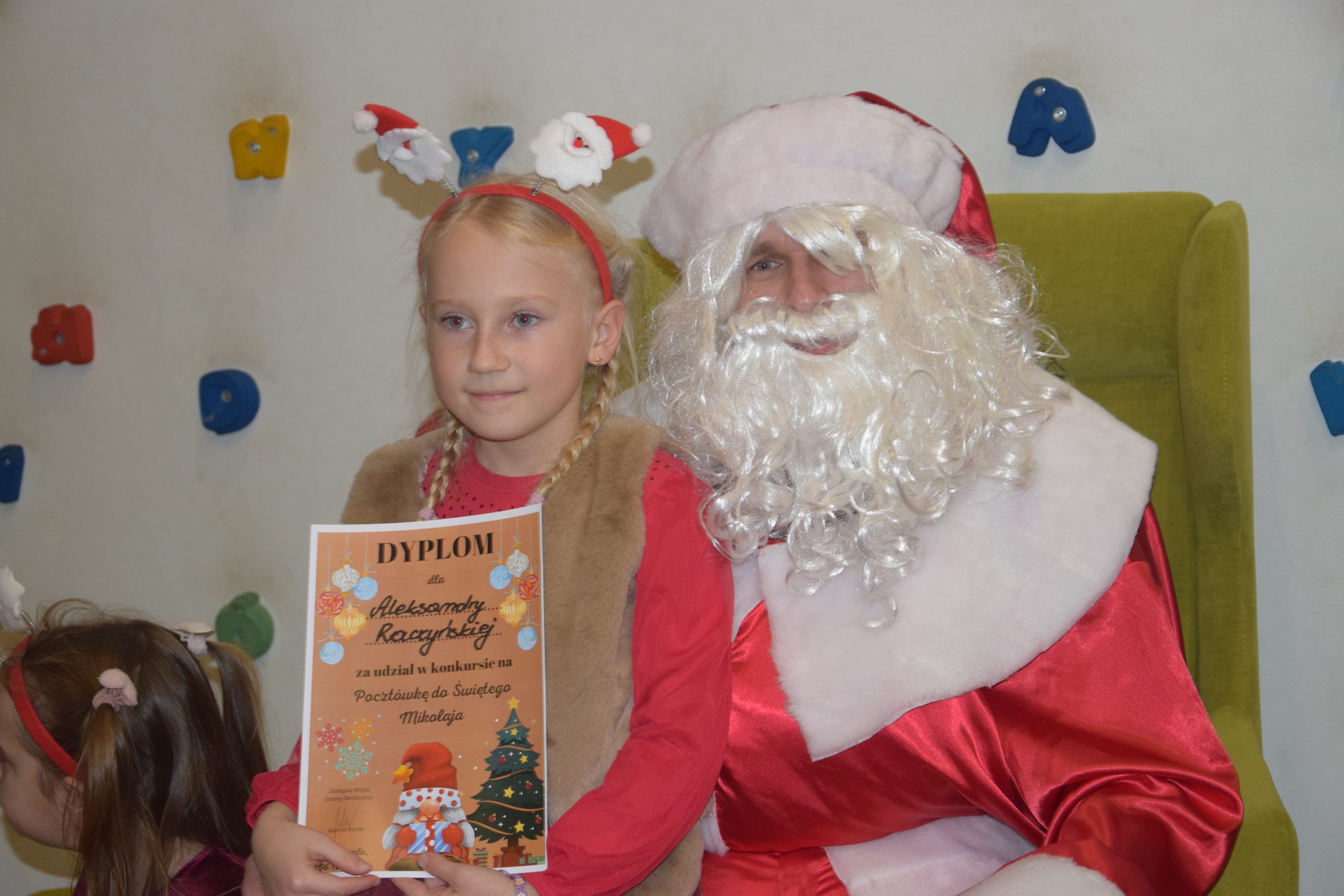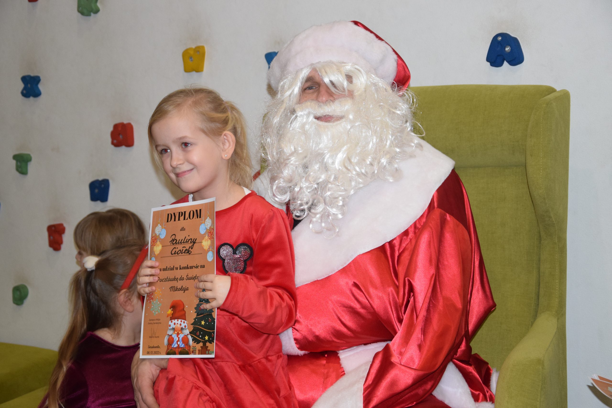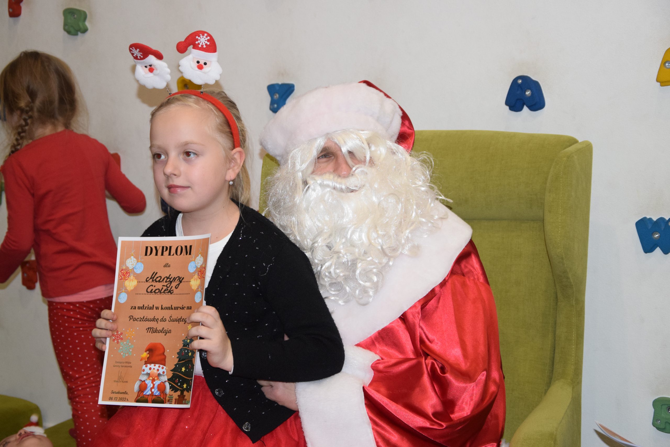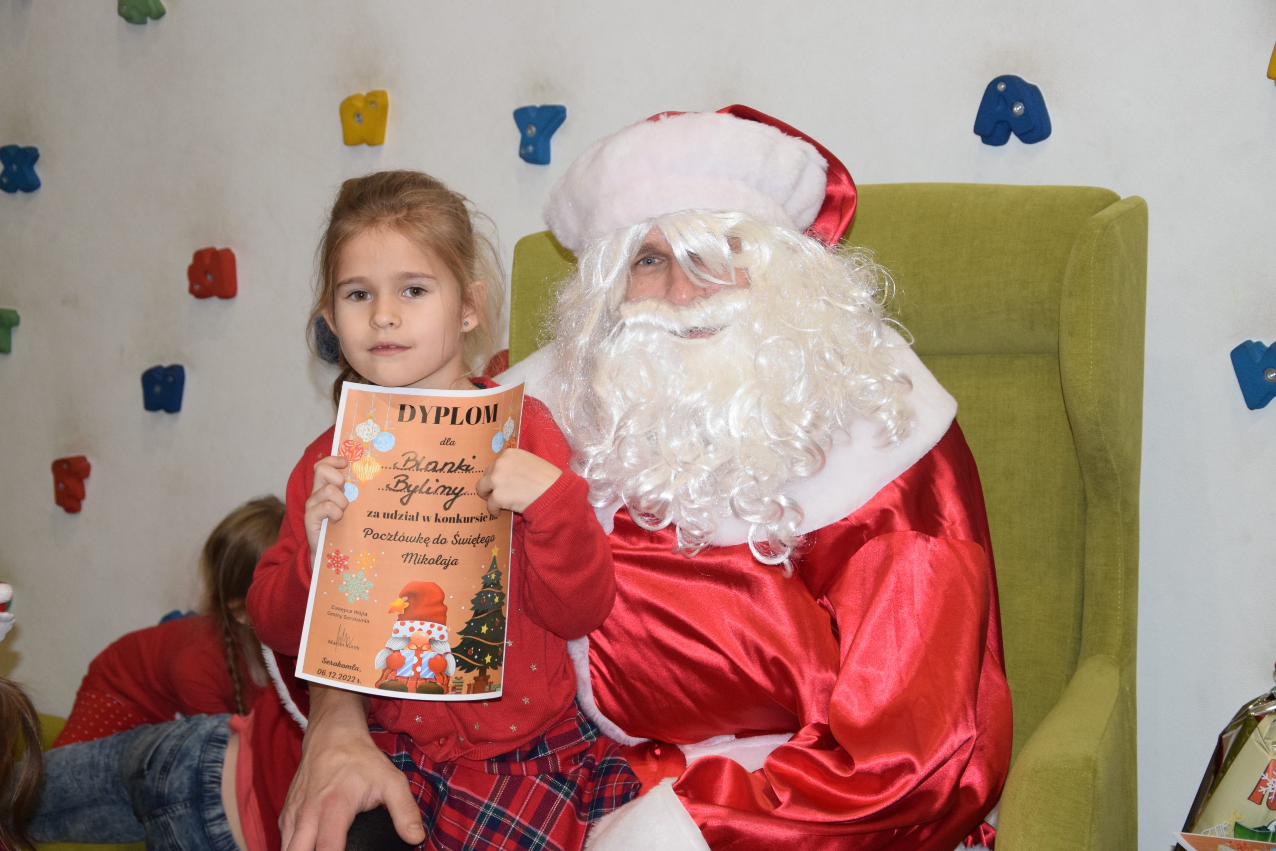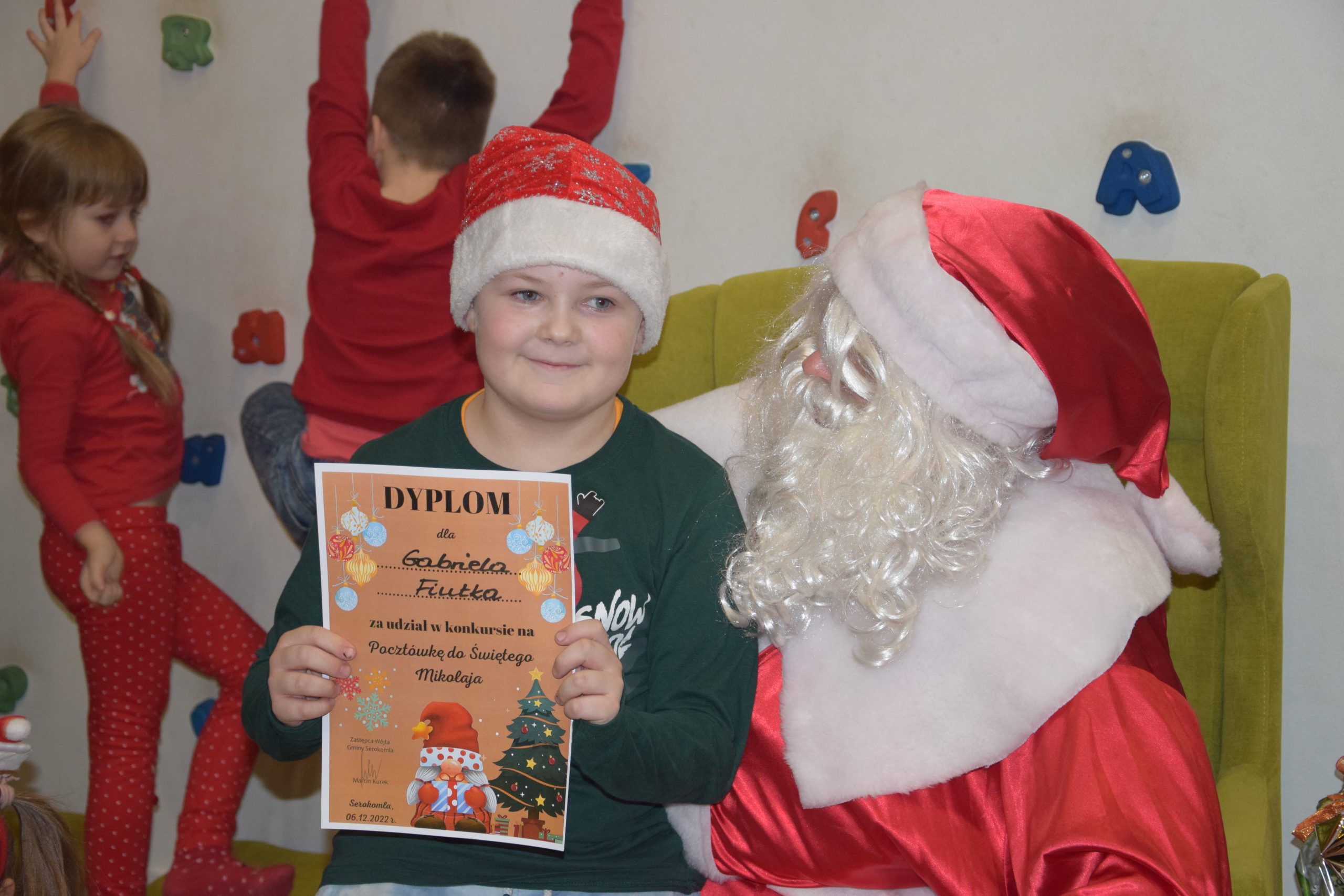 Wszystkie dzieci, które złożyły prace w konkursie pt. ,,Pocztówka do Świętego Mikołaja” 6 grudnia miały spotkanie w bibliotece z Mikołajem.